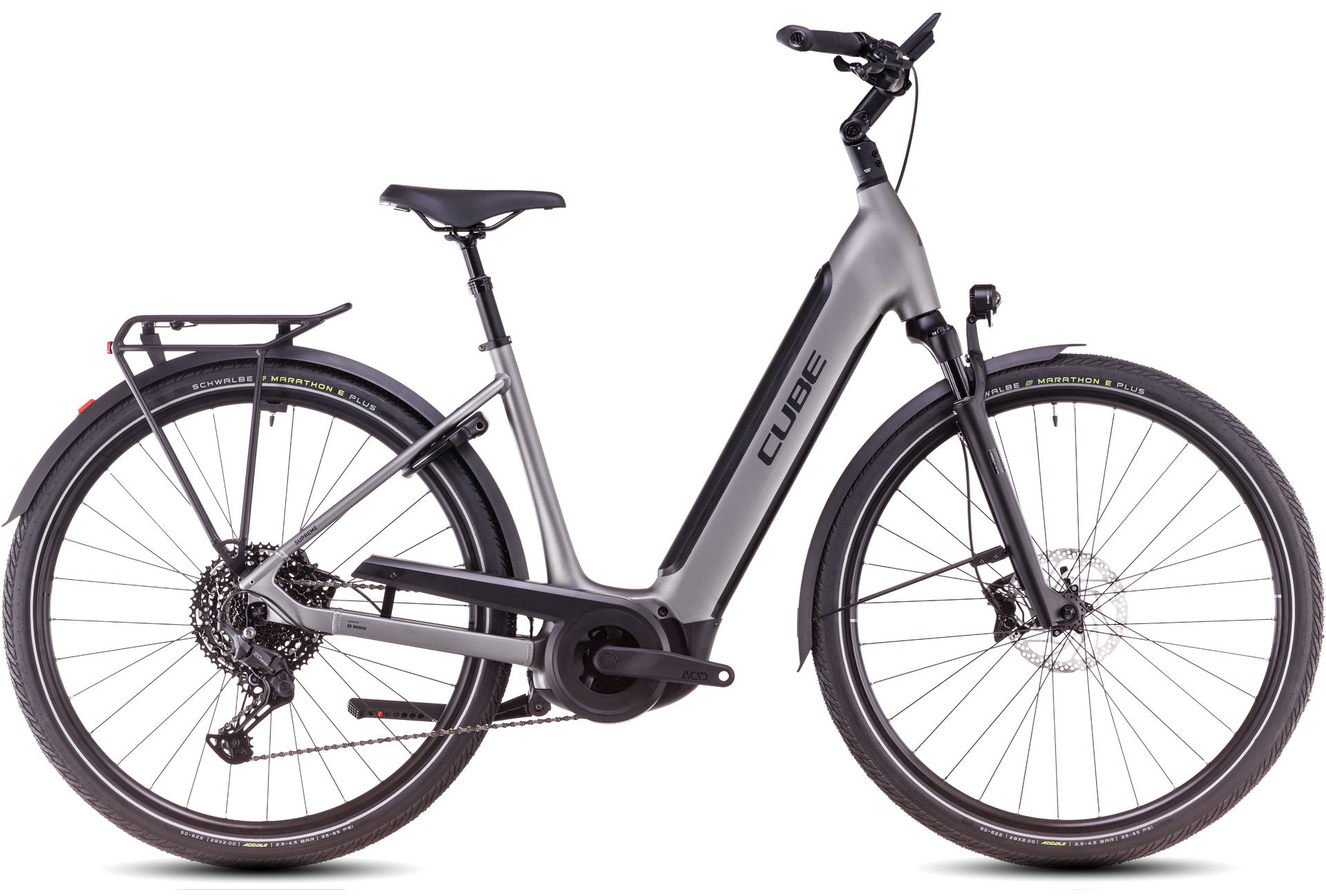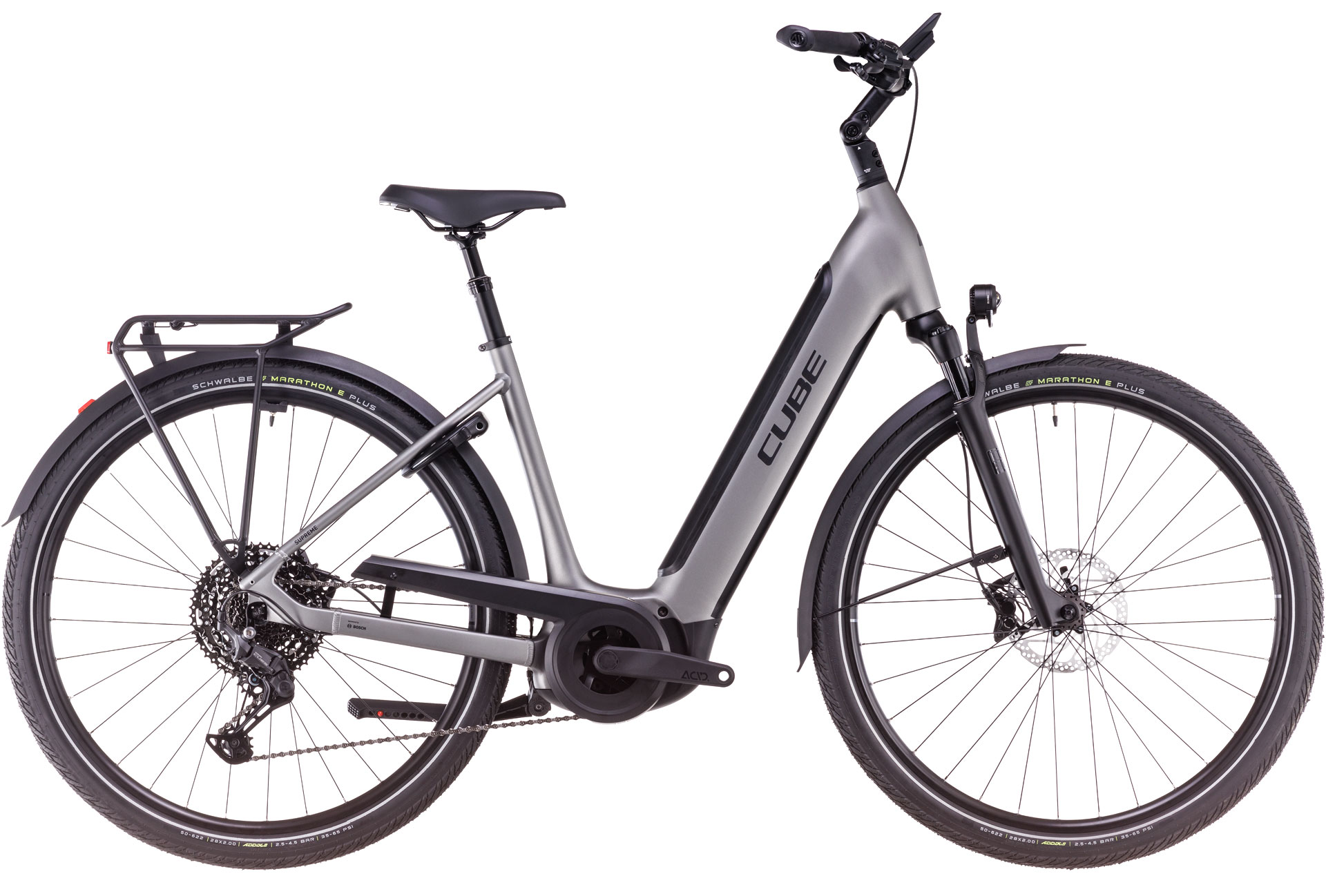 Schlicht, elegant, sicher und praktisch – so unsere Devise bei der Entwicklung des Supreme Hybrid Rahmens. Dank PowerTube Design fügt sich der Bosch 625 Wh Akku formschön ein, was für einen schlanken, harmonischen Look sorgt. Auch der Bosch CX Motor (mit 85 Nm Drehmoment) verschwindet praktisch unbemerkt im Rahmen. Zudem macht dieser Tiefeinsteiger seinem Namen alle Ehre und ermöglicht bequemes und schnelles Auf- und Absitzen. Zugunsten erstklassiger Lenkpräzision und einfachem, intuitivem Handling haben wir uns für ein superstabiles und sicheres konifiziertes Steuerrohr entschieden. Der Rahmen wurde mit einen semi-integrierten Gepäckträger ausgestattet. Doch praktisch ist nicht alles – für eine durch und durch authentische, elegante Optik kam unser Smooth Welding Verfahren zum Einsatz. Übrigens ist das Chassis in vielen verschiedenen Größen von 46 bis 58 cm verfügbar.