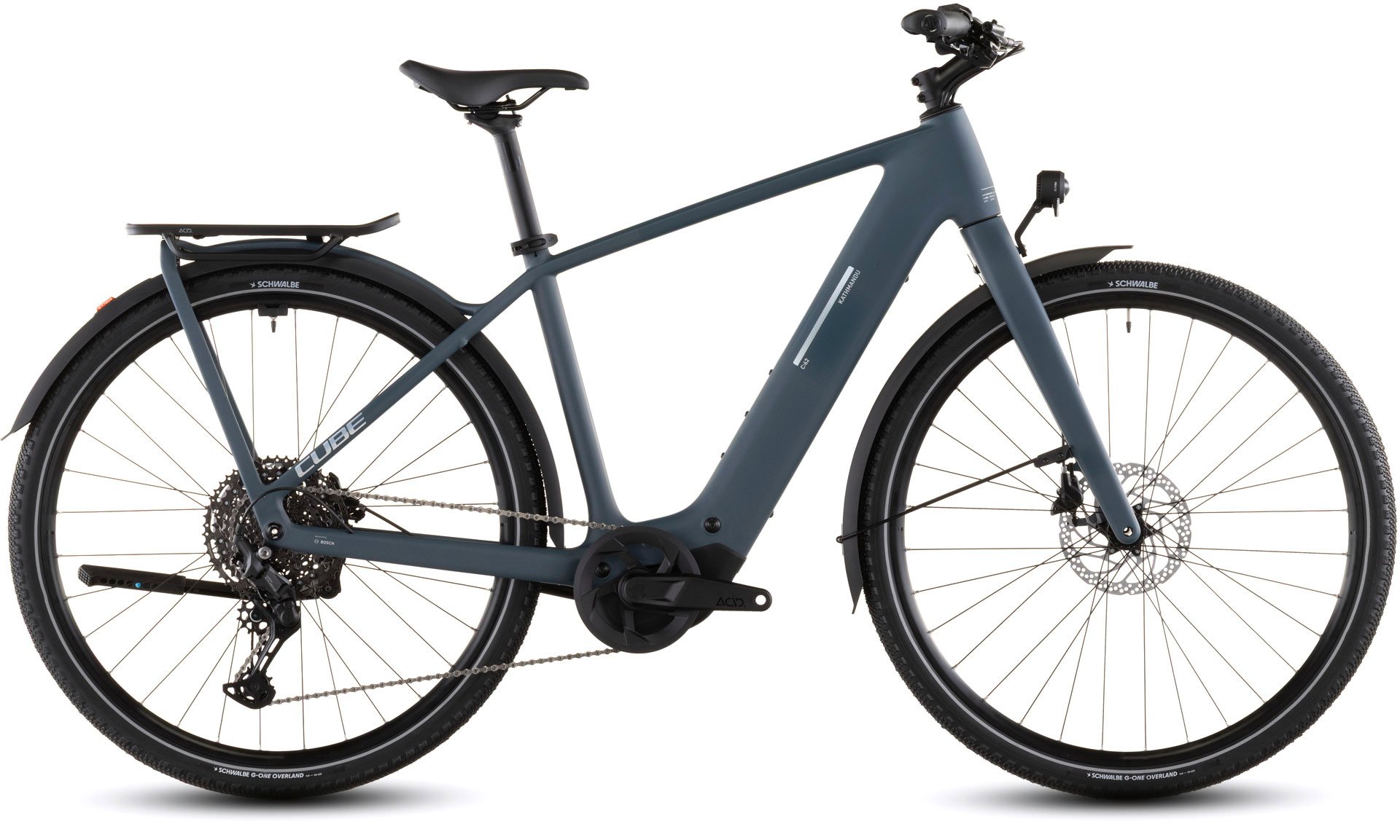 A lighter touring bike means you can take more with you, but low weight is no good without strength. That's why, for the CUBE Kathmandu Hybrid C:62, we used our tried-and-tested C:62® carbon to build a frame structure that combines the load-bearing capacity you need with the comfort and ride handling that you'd expect from CUBE. With a UDH derailleur hanger, Advanced Internal Cable Routing and Boost front and rear axles, it's both elegant and easy to live with. The rigid carbon fork is light and responsive, while the IC 3.0 rear carrier is adaptable and offers a sturdy platform for carrying whatever you need to take with you. Add the 400Wh battery, and it's the complete package for lightweight hybrid touring.