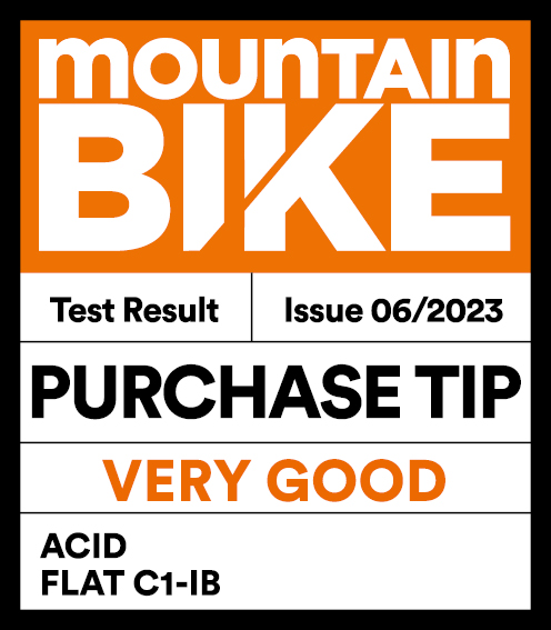 The Flat pedal from ACID – a CUBE brand – is a lightweight pedal with masses of grip courtesy of nine well-placed pins. Another impressive feature of these well-manufactured pedals is the huge contact surface.