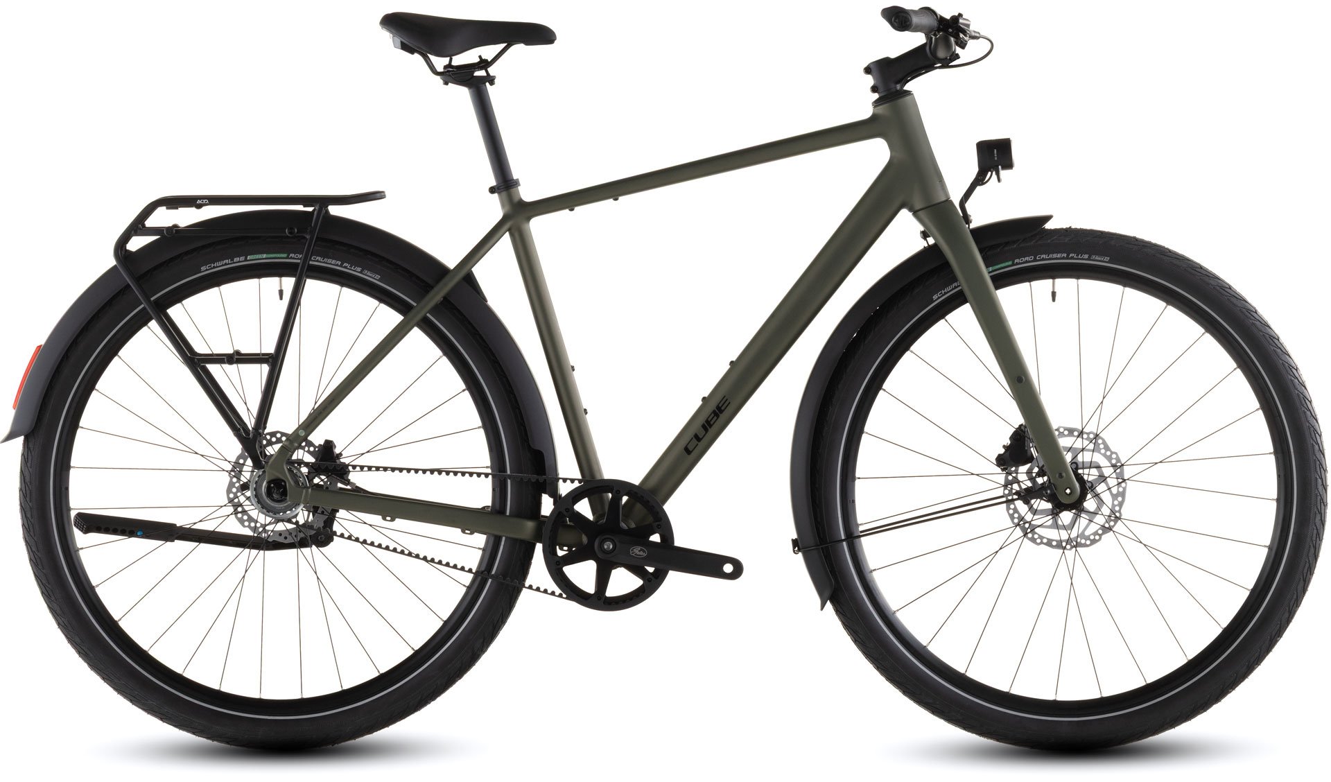 The Editor ONE FE represents a new way of looking at urban transport. That's because we've equipped it with everything you need – from a semi-integrated carrier to full-length mudguards, kickstand and a lighting set powered by a front hub dynamo. A singlespeed set-up with a quiet, clean and low-maintenance belt drive removes all the hassle of gears and chains, replacing it with a single gear that's ideal for zipping around town. Meanwhile, powerful Shimano hydraulic disc brakes plus comfortable, fast-rolling Schwalbe 55mm Road Cruiser Plus tyres ensure safe stopping in any weather. It means business, because getting around town should be a pleasure rather than a chore.