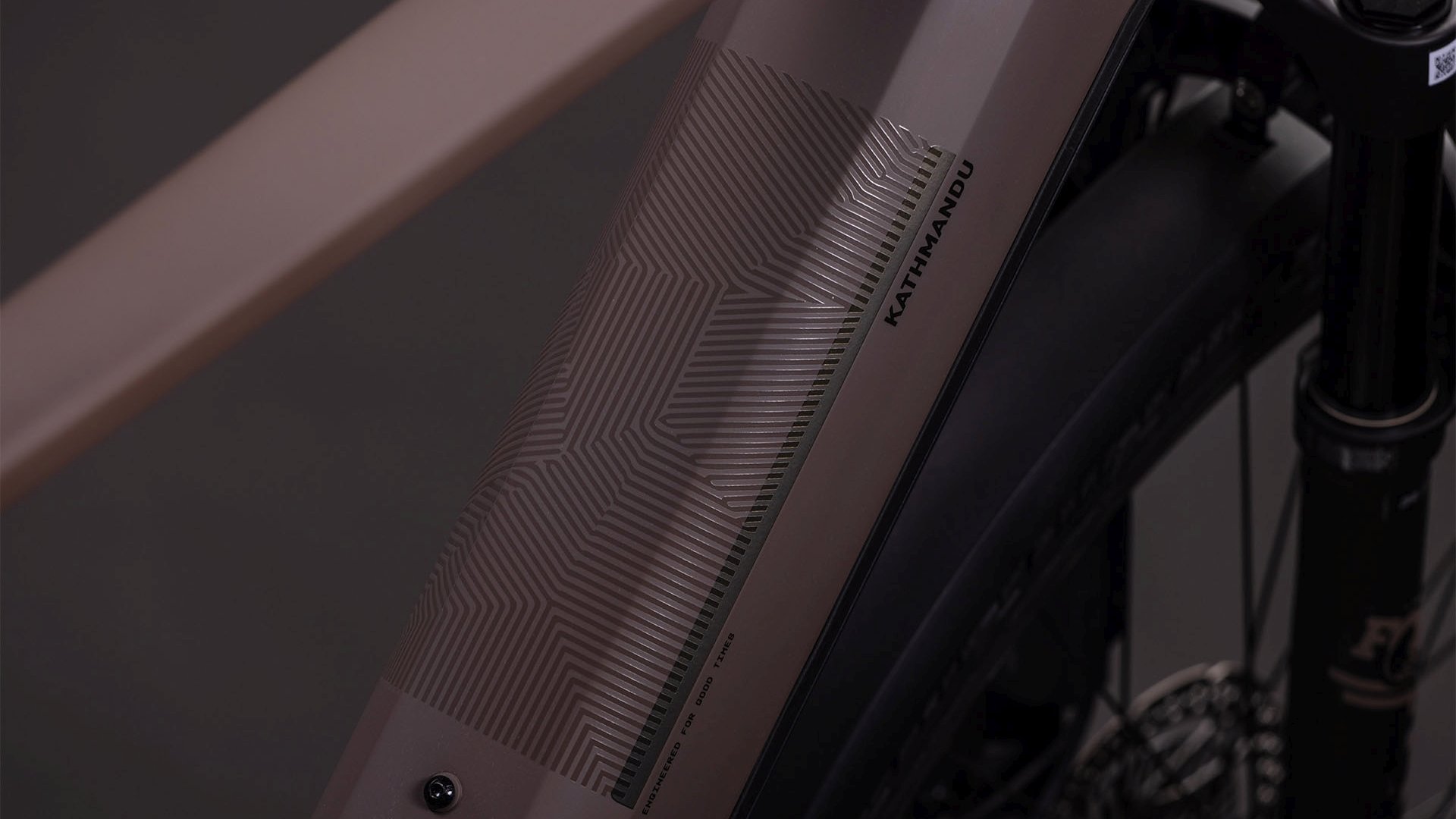 The CUBE Kathmandu Hybrid's design is classically elegant – familiar, even – but it's stuffed full of innovation and clever touches. The neatly housed Bosch CX drive and 800Wh PowerTube battery are just the start. Efficient Comfort Geometry is designed around a 100mm travel suspension fork, for better control even when the going gets rough. Integrated cables complement the frame's clean lines, while a UDH dropout is tough, versatile and future-proof. And, of course, there's an integrated chain guard mount and our tough, sturdy and exceptionally neat Integrated Carrier 3.0, so you can carry everything you need for your adventures.