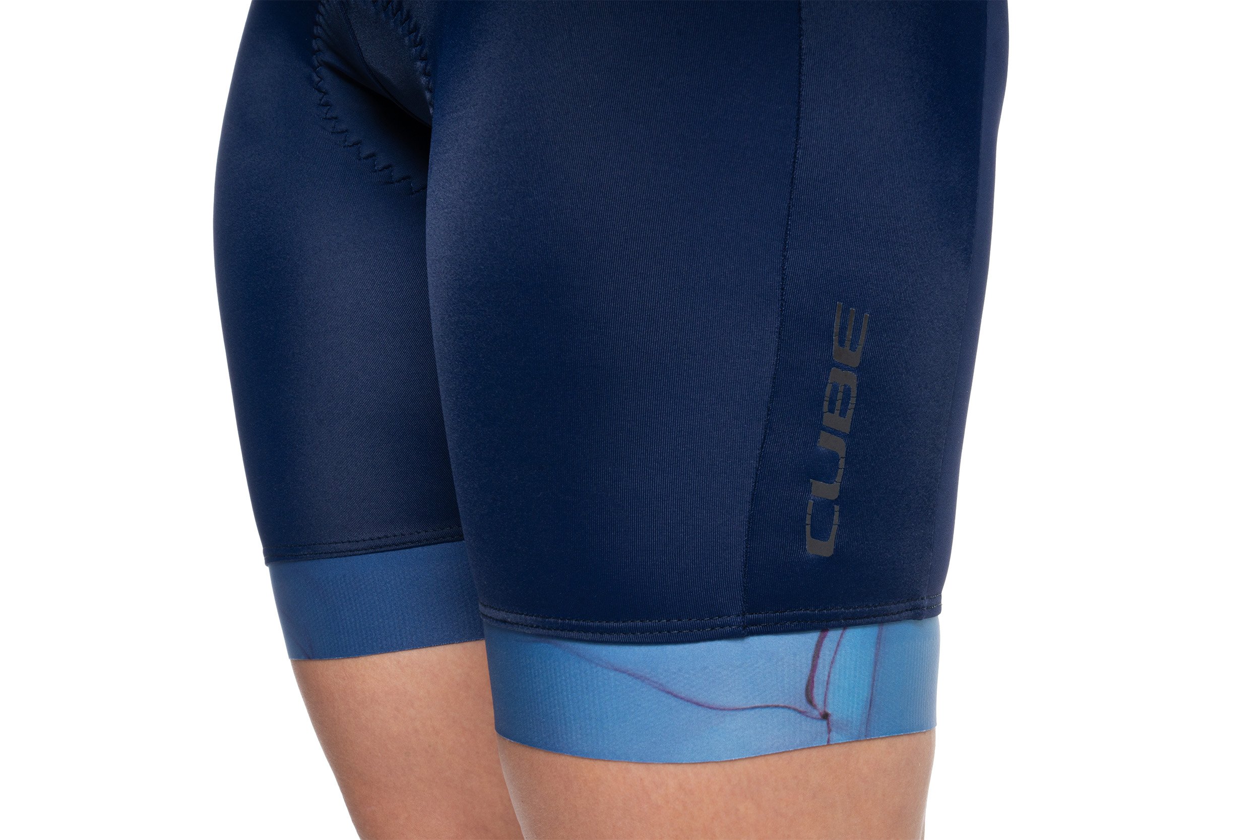 The CUBE Road/XC Bib Shorts were specifically designed for women, offering an optimised fit with maximum freedom of movement. The high-quality, abrasion-resistant stretch fabric with Lycra is quick-drying and ensures lasting comfort – even on long-distance rides. Streamlined seams minimise friction points, enhancing overall comfort. The thoughtfully engineered design also makes outdoor breaks more convenient. The women-specific chamois provides targeted cushioning and optimal pressure distribution for long-lasting support. Elastic leg grippers with silicone keep the shorts securely in place, while reflective details enhance visibility in low-light conditions.