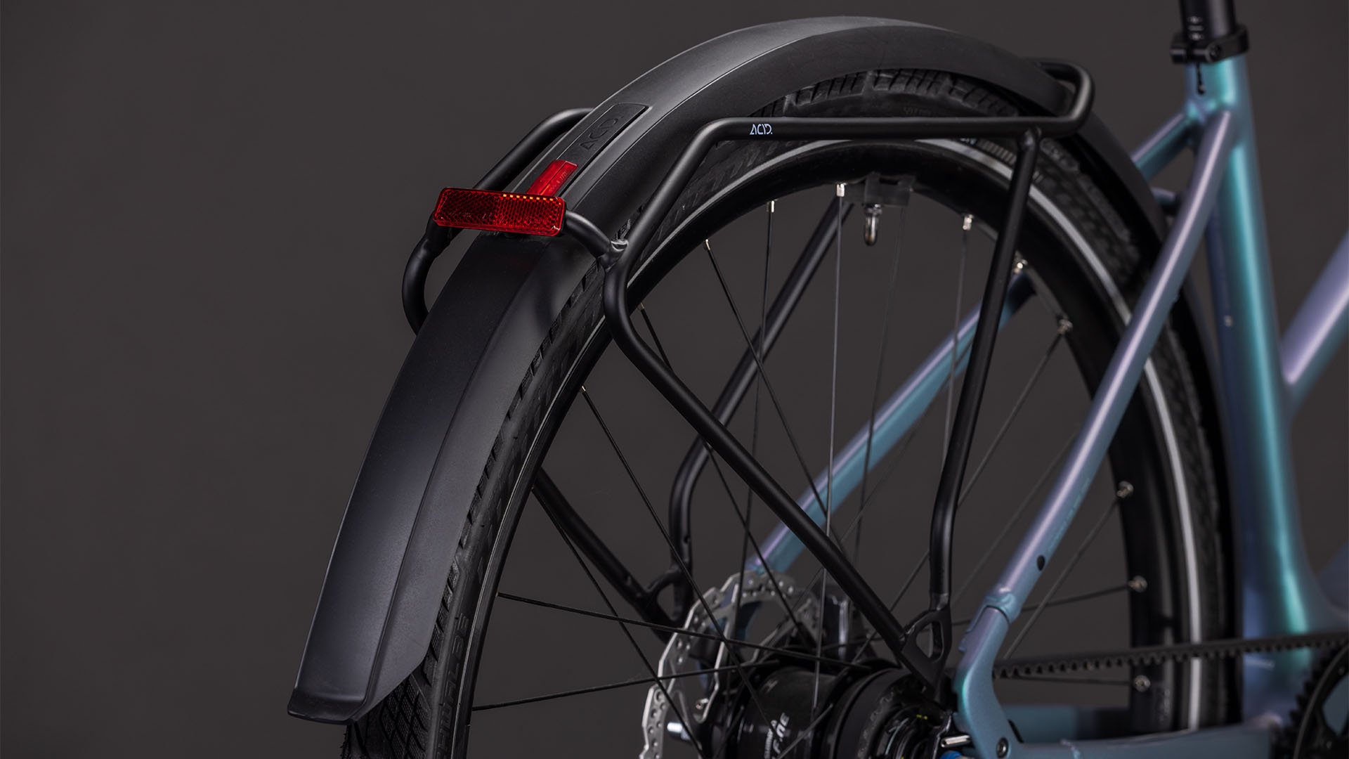 Understatement trifft Klasse – so gesehen beim Trapezrahmen des Editor Hybrid FE. Seine leichte, robuste Aluminiumkonstruktion mit den im Smooth Welding Verfahren gestalteten Hauptrohrverbindungen ergibt ein elegantes Chassis, das wir mit einer leichten und zugleich stabilen Vollcarbongabel ergänzt haben. Um die Optik möglichst clean zu halten, verlaufen die Leitungen im Inneren und der 400 Wh starke Akku wurde ästhetisch ins Unterrohr integriert, was auch noch Platz und Gewicht spart. Dazu kommt ein vielseitiger, robuster Gepäckträger am Heck und ein optionaler Front-Gepäckträger für sämtliches Hab und Gut auf dem Weg durch die City. Außerdem Schutzbleche, helle Lichter und ein praktischer Seitenständer. Kurz: Wir haben an alles gedacht, was im Großstadtdschungel wichtig ist!