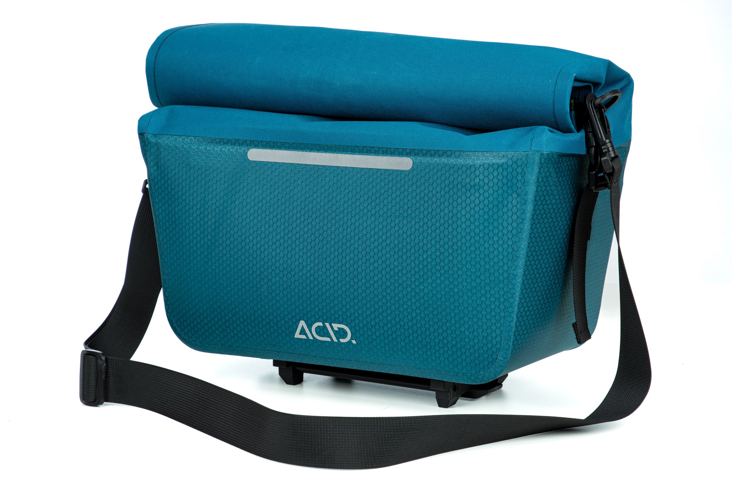 The waterproof exterior of the ACID Trunk Bag PRO 14 RILink keeps your stuff protected in all weathers, while the ACID RILink adapter guarantees quick and easy attachment to all RILink carriers from ACID and CUBE. A convenient shoulder strap takes it from rack to shoulder with ease. Reflectors add visibility in all conditions.