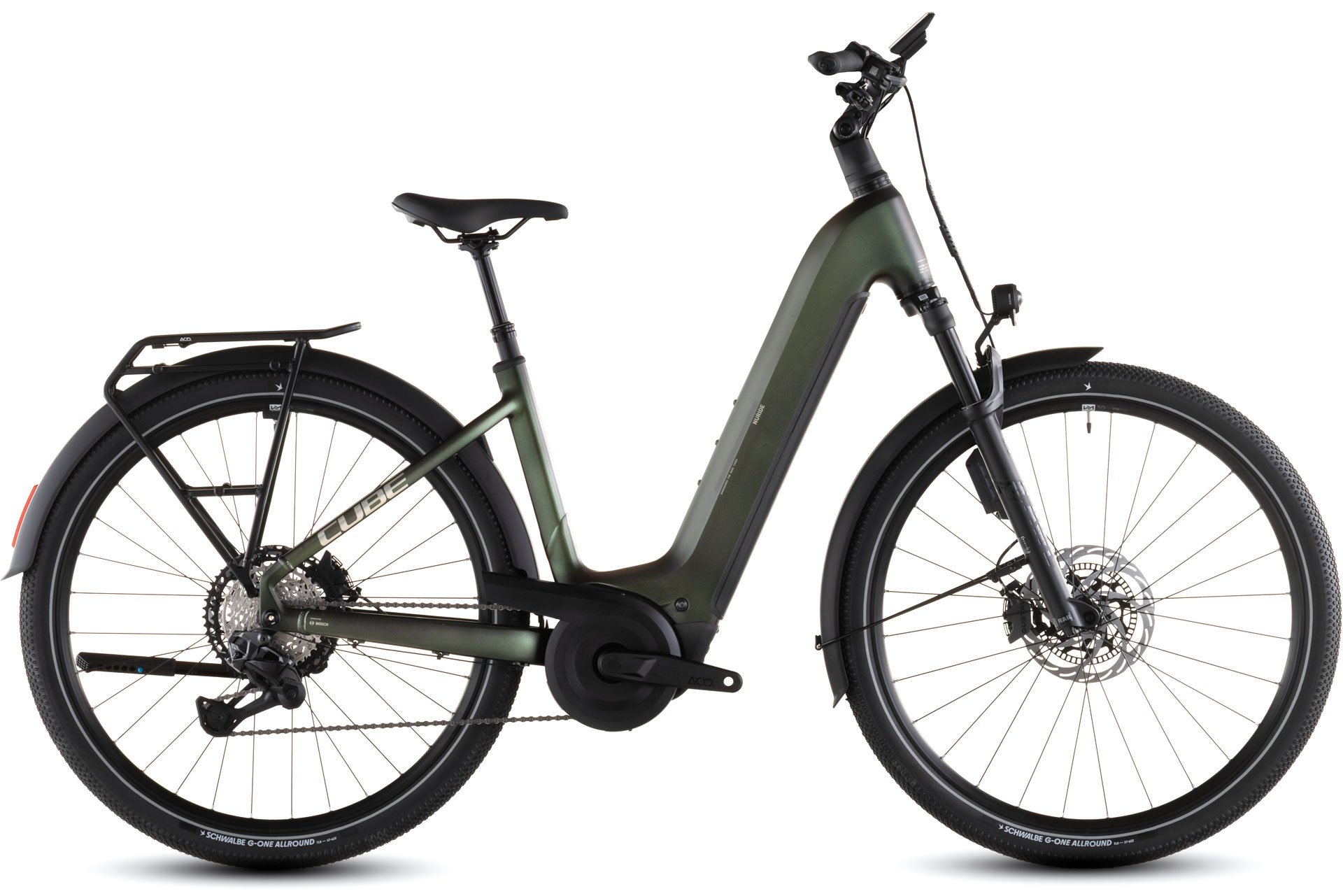 The Nuride Hybrid's Easy Entry frame does exactly what you'd expect it to do, making riding a simple pleasure with no acrobatics required. Designed to accommodate a 100mm suspension fork for extra comfort and control, it also features generous tyre clearances – even with the supplied mudguards. Integrated cables complement the frame's clean looks and the 800Wh PowerTube battery and Bosch CX drive are neatly incorporated into the frame structure. There's an integrated chain guard and, with the included mudguards, lights and kickstand plus the sturdy Semi Integrated Carrier 2.0, you've everything you need for two-wheeled adventures.