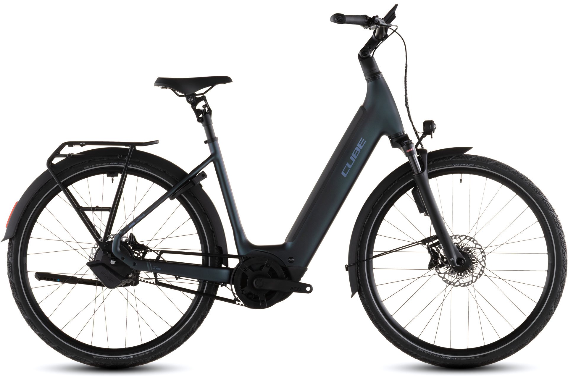 The devil is always in the detail. With the Supreme Hybrid frame, Bosch's Performance CX motor provides quiet and smooth pedal assistance up to 100Nm. The 600Wh Bosch PowerTube battery is stowed neatly inside the down tube, while Smooth Welding complements the frame's clean, almost organic lines. Integrated Cable Routing and X-Connect keep wires and cables out of sight and out of harm's way. There's a wide range of sizes from 46cm to 58cm, so everyone should be able to find their ideal fit. The Semi-Integrated Carrier 2.0 is equal parts neat and sturdy, giving you a solid platform on which to carry... well, whatever you need. And we added mudguards, a full lighting system and a kickstand, so you really are all set.