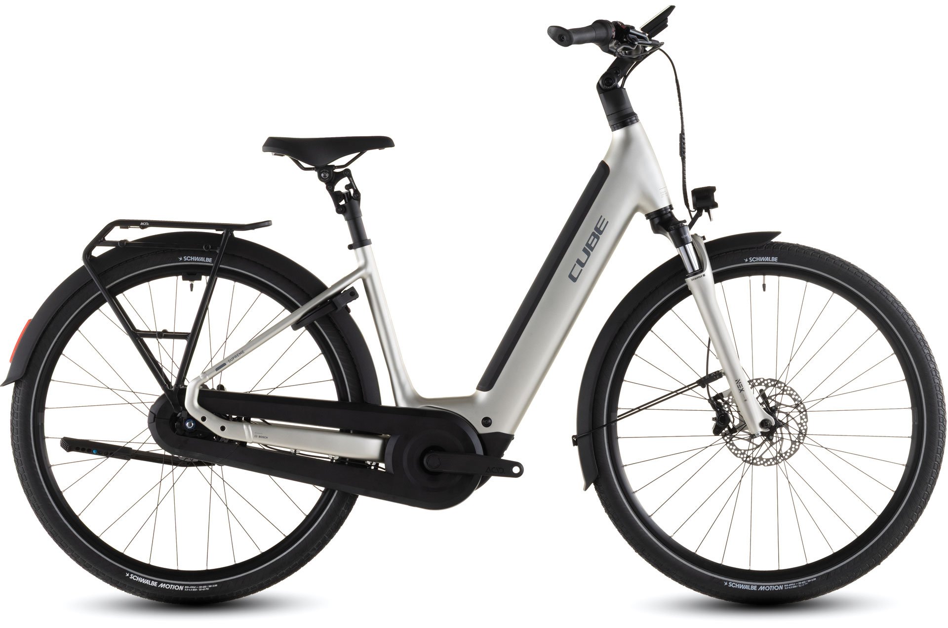 The devil is always in the detail. With the Supreme Hybrid frame, Bosch's Performance PX motor provides quiet and smooth pedal assistance up to 90Nm. The 600Wh Bosch PowerTube battery is stowed neatly inside the down tube, while Smooth Welding complements the frame's clean, almost organic lines. Integrated Cable Routing and X-Connect keep wires and cables out of sight and out of harm's way. There's a wide range of sizes from 42cm to 58cm, so everyone should be able to find their ideal fit. The Semi-Integrated Carrier 2.0 is equal parts neat and sturdy, giving you a solid platform on which to carry... well, whatever you need. And we added mudguards, a full lighting system and a kickstand, so you really are all set.