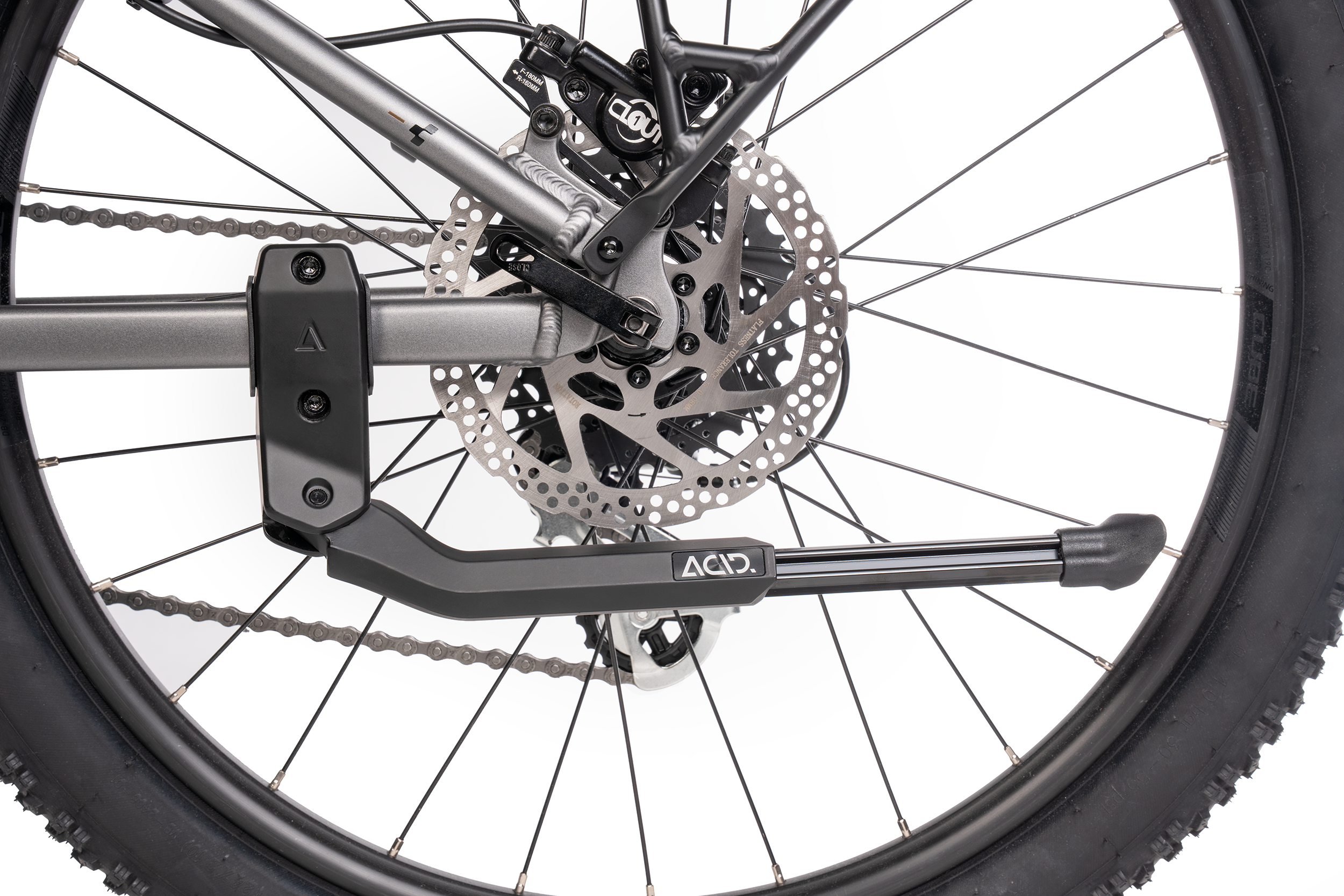 The ACID Universal Bike Kickstand is suitable for bicycles with wheel sizes from 24–29in. It mounts easily to the chainstay, allowing for quick and effortless retrofitting. Its sturdy design ensures stable support – even with loaded bikes. Thanks to its universal fit, the kickstand is compatible with a wide range of bicycle models and offers a durable everyday solution. Robust materials provide high resistance to mechanical stress and weather conditions.