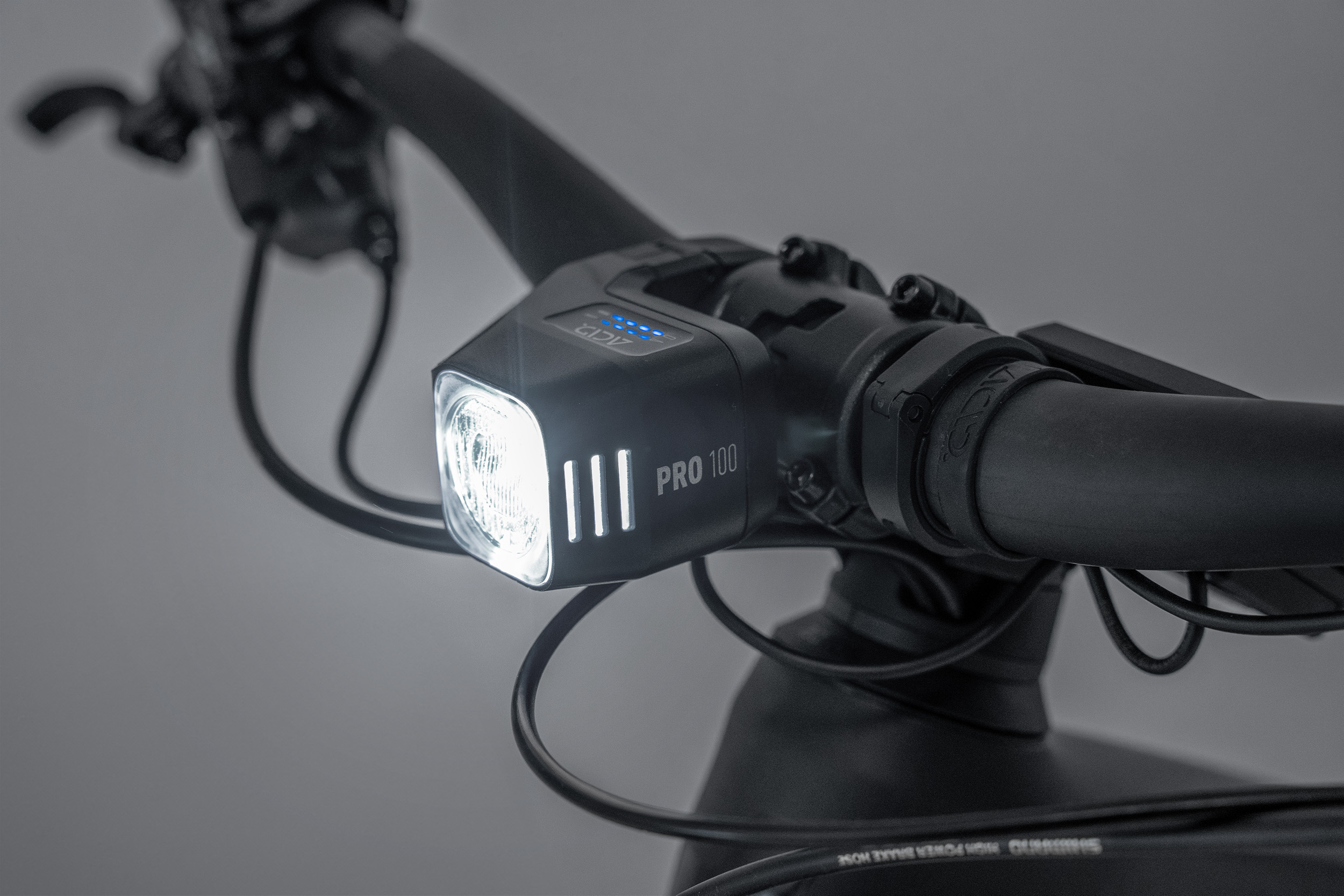 See and be seen in road traffic with the ACID PRO 100 front light and ACID PRO EVOLUTION rear light set. The front light packs 100 lux of power to evenly light up the way ahead, while an integrated brake light at the rear warns other road users that you are slowing down. The front light’s asymmetrical design allows it to be positioned centrally to maintain a sleek and decluttered cockpit. Installation is quick, easy and tool-free courtesy of the Slide-Lock handlebar mounting system at the front and a silicone strap at the rear. And of course the set complies with German road traffic regulations (StVZO), has IPX5-rated splash protection, and USB-C connections for easy recharging.