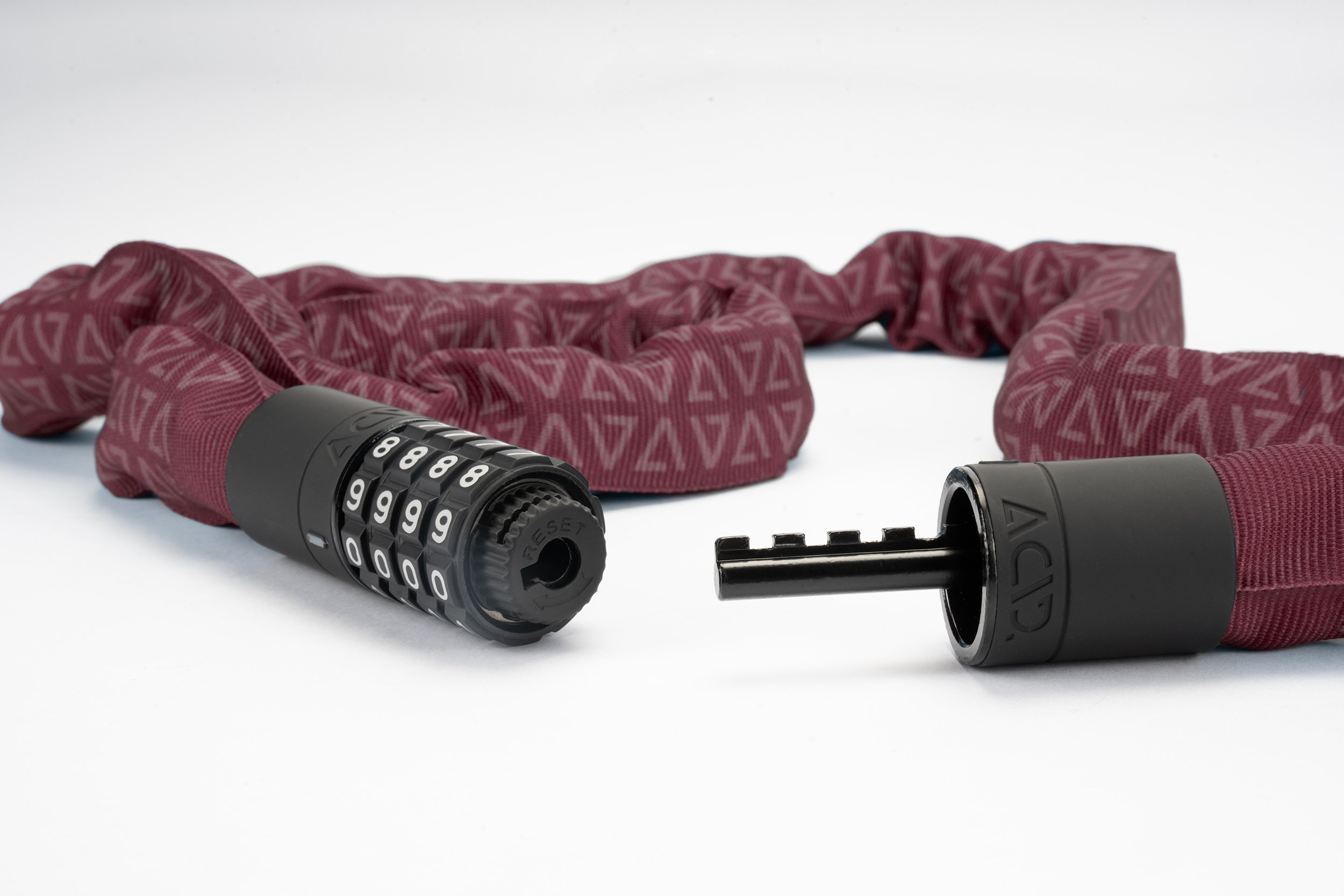 The extra-secure chain lock in our CORVID C range is virtually noiseless yet incredibly sturdy with a tear-resistant, hard-wearing textile sleeve. A rubberised surface prevents corrosion and protects your frame against scratches. GRIP+ technology on the lock body and combination wheels ensures maximum grip. Personalisable combination.