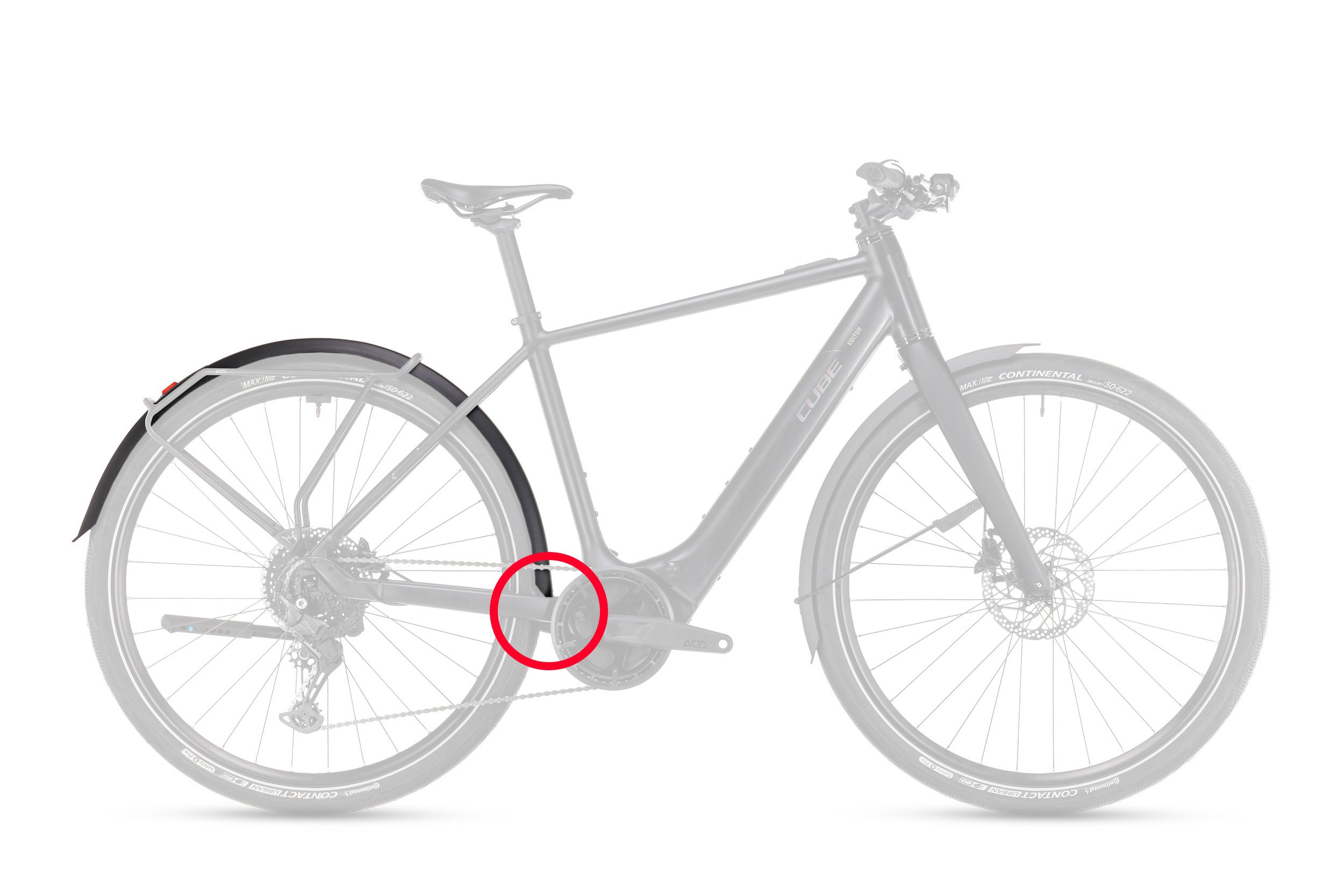 The ACID 60 mudguard set is compatible with CUBE Editor Hybrid bikes. BB mount technology means the mudguard attaches to the bottom bracket. Clever finishing touches like the glossy finish icon details, the ACID adapter system, the FEM-optimised design and the integrated lighting cable guide add style and practicality. The set is compatible with our ACID rear light integration technology. A well-rounded bit of kit! Includes knurled stays.