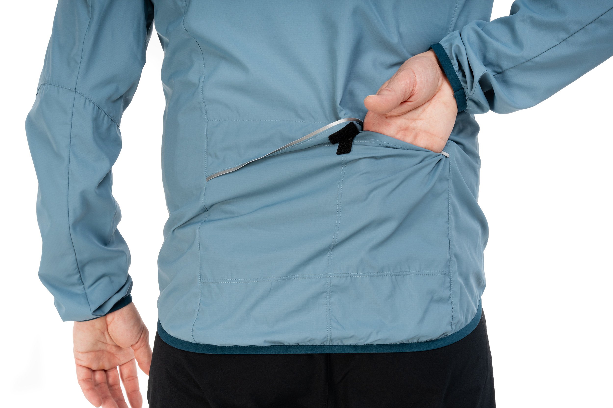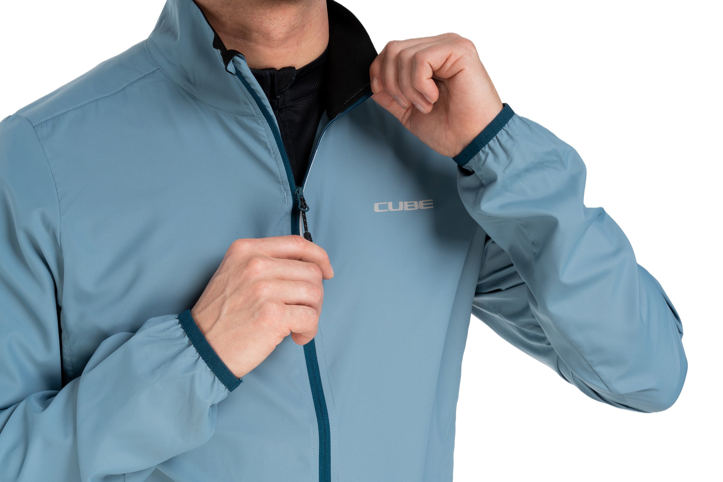 The Cube Road/XC wind jacket not only offers excellent wind protection, it also keeps out light rain showers. Thanks to its lightweight material and elastic side inserts, the jacket adapts comfortably to your body shape. It can also be folded up super small and stowed away inside itself.